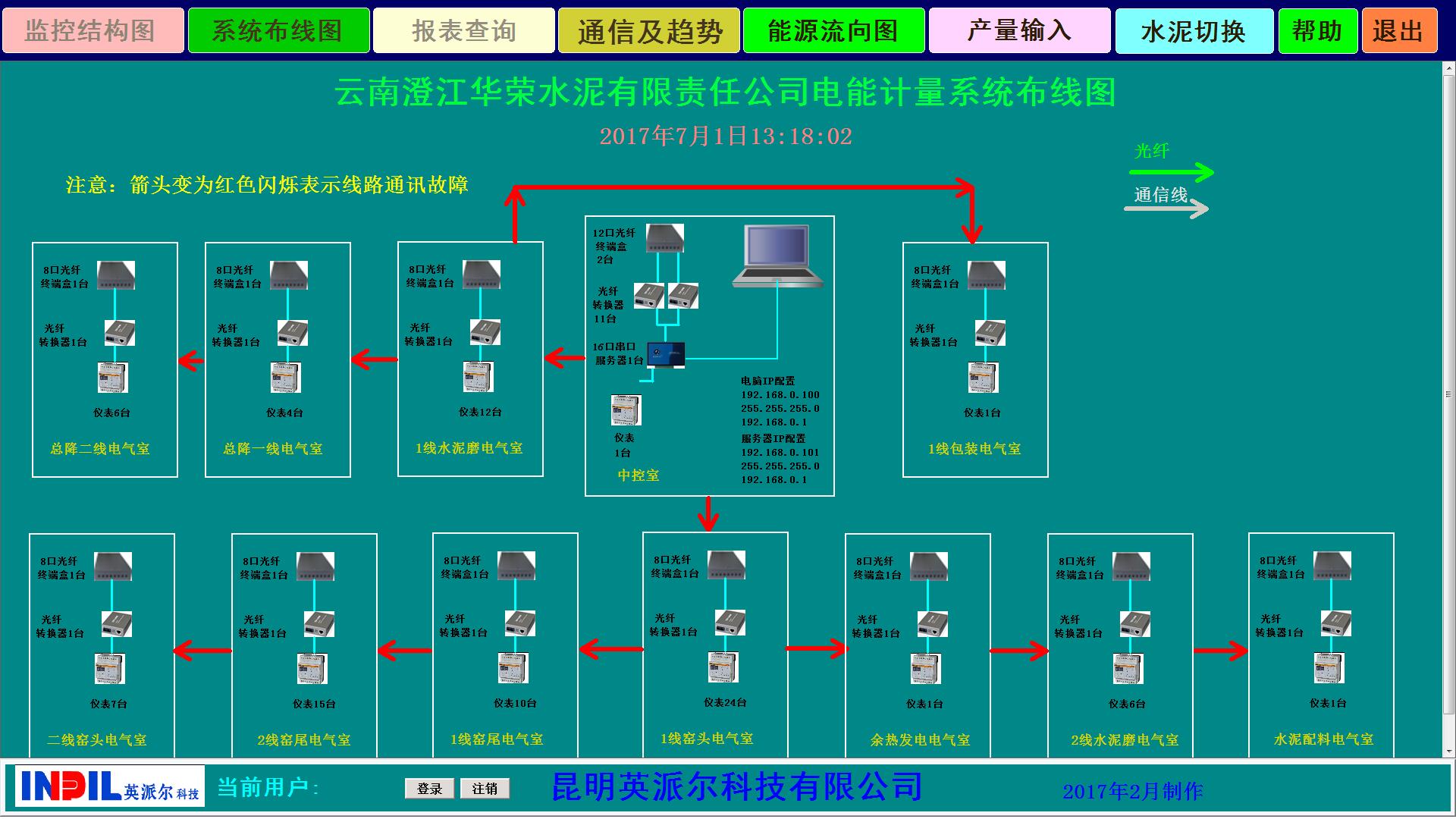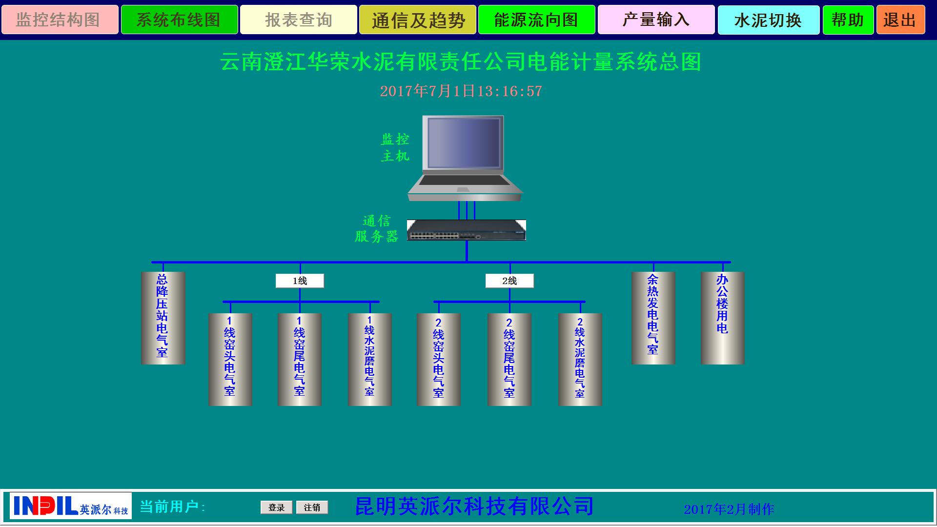 目前,云南澄江華榮水泥有限公司擬對高壓和部分低壓供電回路進行技術改進,增加一套先進的電能計量遠程抄表管理系統,簡稱計量管理系統。以便能更好的對全公司用電進行精細化管理,實時采集各工序、各車間、各設備的用電信息,監測設備的動態運行情況,分析設備和整線的能耗情況,自動生成小時報表、班報表、日報表、月報表和年報表,為公司領導決策及技術分析提供科學依據。