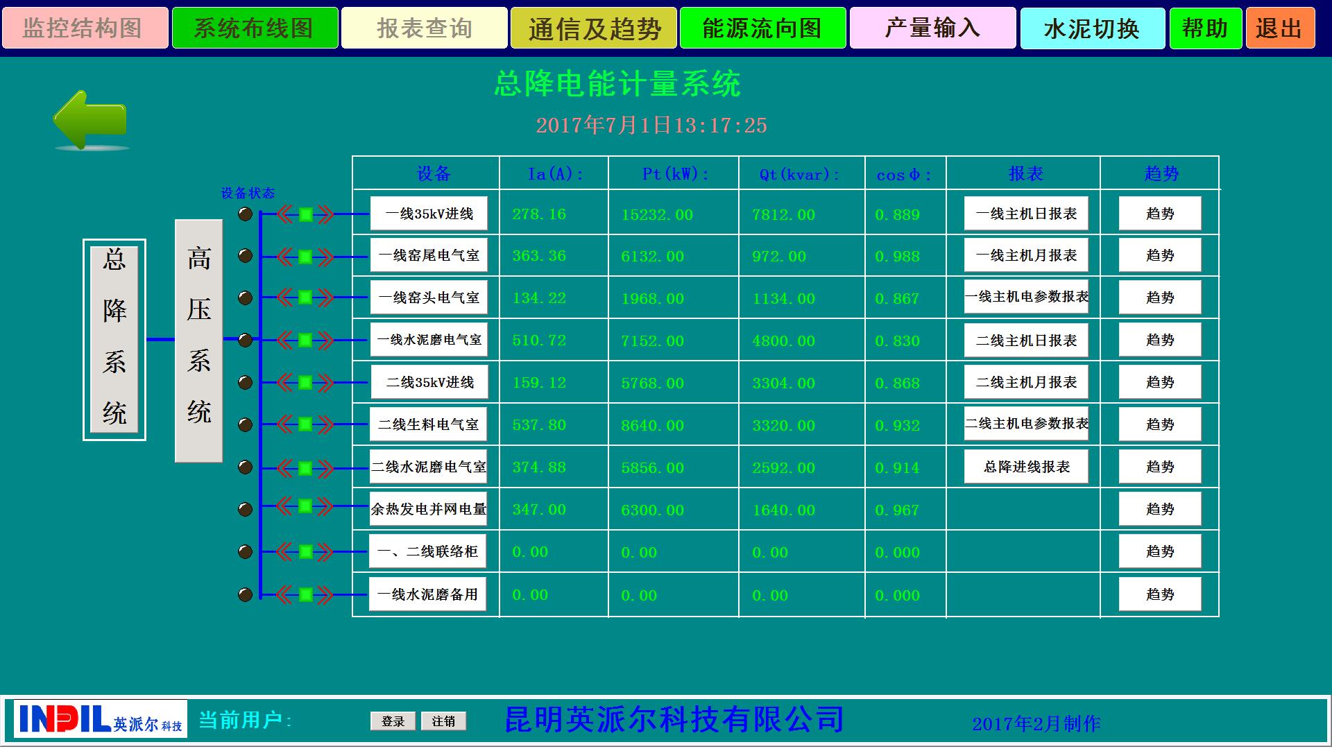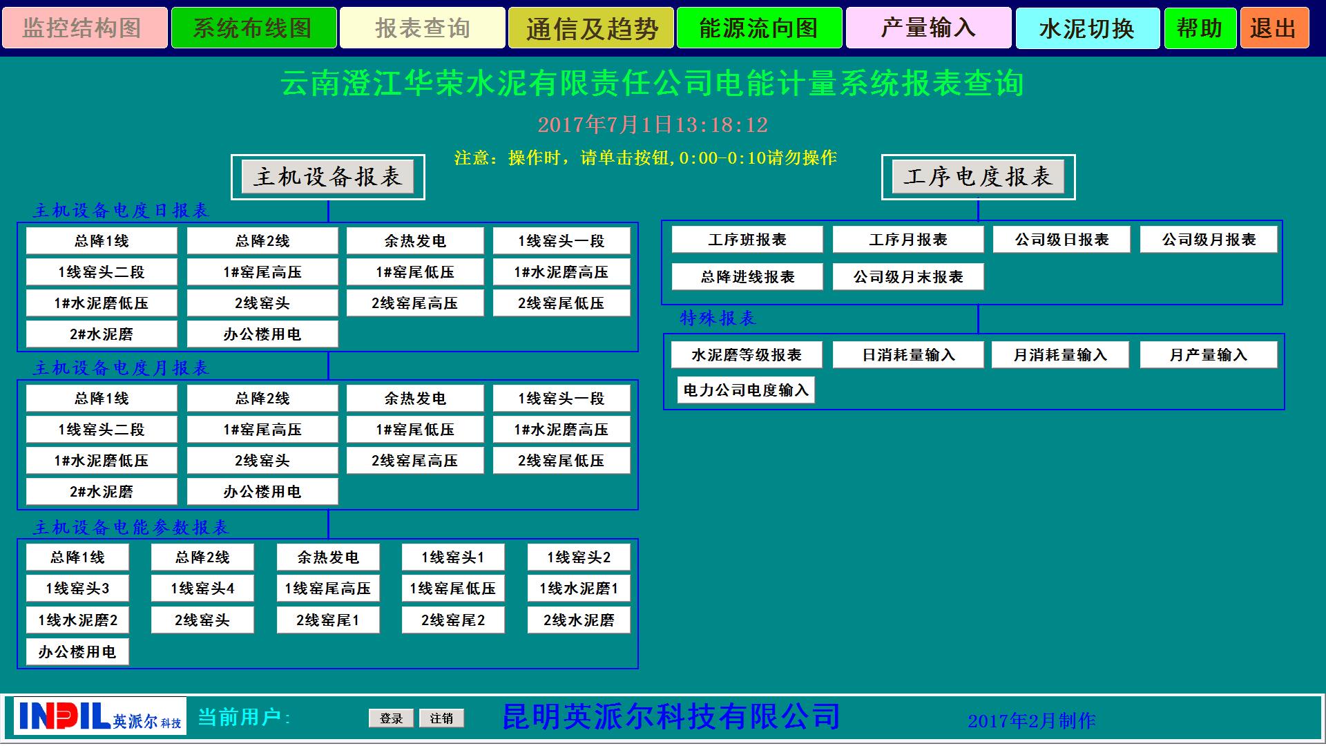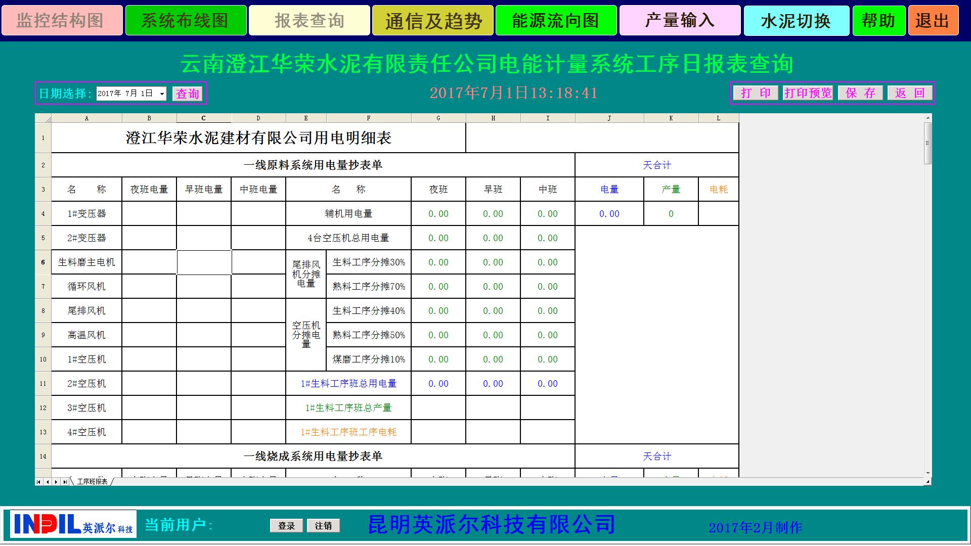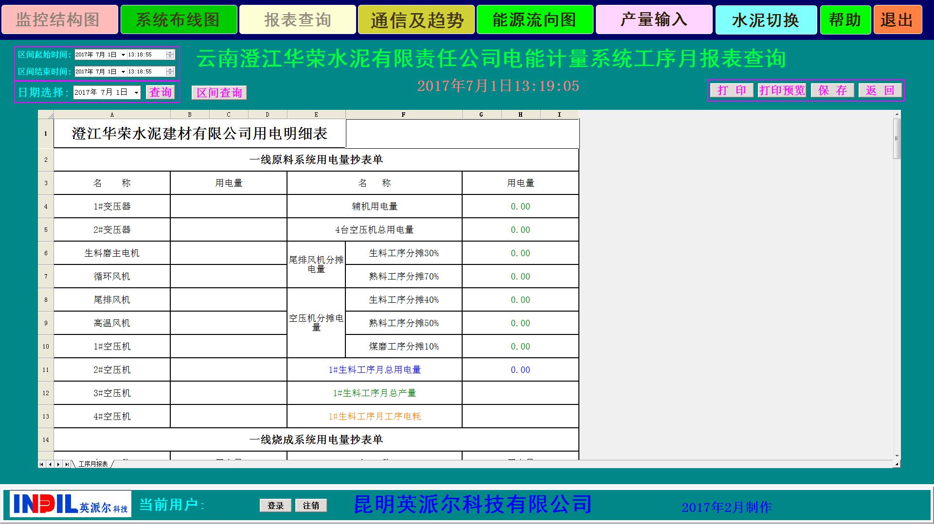 管理系統自動生成的電能信息統計圖形、曲線和報表,以班、日、周、月、年為周期的電能耗統計報表,報表類型分為電壓等級、車間、重要耗能設備三個層次,報表能以EXCEL類型導出。