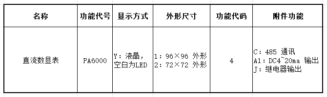 例如:1:PD6000-26D-CA1:96 外形直流電流電壓功能,帶通訊,帶 4~20mA 輸出