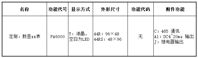 例如:1:PD6000-26D-CA1:96 外形直流電流電壓功能,帶通訊,帶 4~20mA 輸出